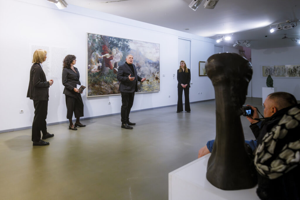 Ispred Nacionalnog muzeja moderne umjetnosti posjetitelje je pozdravio ravnatelj Branko Franceschi koji je izrazio svoje zadovoljstvo postavom i ‘novim ruhom’ izložbe. – Premda je izložbena koncepcija prvotno osmišljena i realizirana u Staroj gradskoj vijećnici, gostovanjem u galeriji i novom prostornom koncepcijom odabranih djela, izložba je zaživjela u jednom zanimljivom ‘novom ruhu’. Istaknuo je također važnost programa ‘NMMU u gostima’ koji je i osmišljen upravo iz razloga da se kapitalna djela nacionalne umjetnosti učine dostupnima i u manjim lokalnim sredinama i da svi imaju jednaku priliku uživati u kulturnim i umjetničkim sadržajima. Umjetnost pripada narodu, i djela iz zbirke Nacionalnog muzeja moderne umjetnosti, kao i svih drugih muzejskih institucija, pripadaju svima nama. Na muzejima je odgovornost da čuvaju, štite, promoviraju i afirmiraju našu umjetničku i kulturnu baštinu, ali isto tako i obveza da svoja vrata drže otvorenima i da umjetnost bude dostupna svima, i u tome je najveća važnost i vrijednost projekta ‘NMMU u gostima’ – istaknuo je Franceschi.